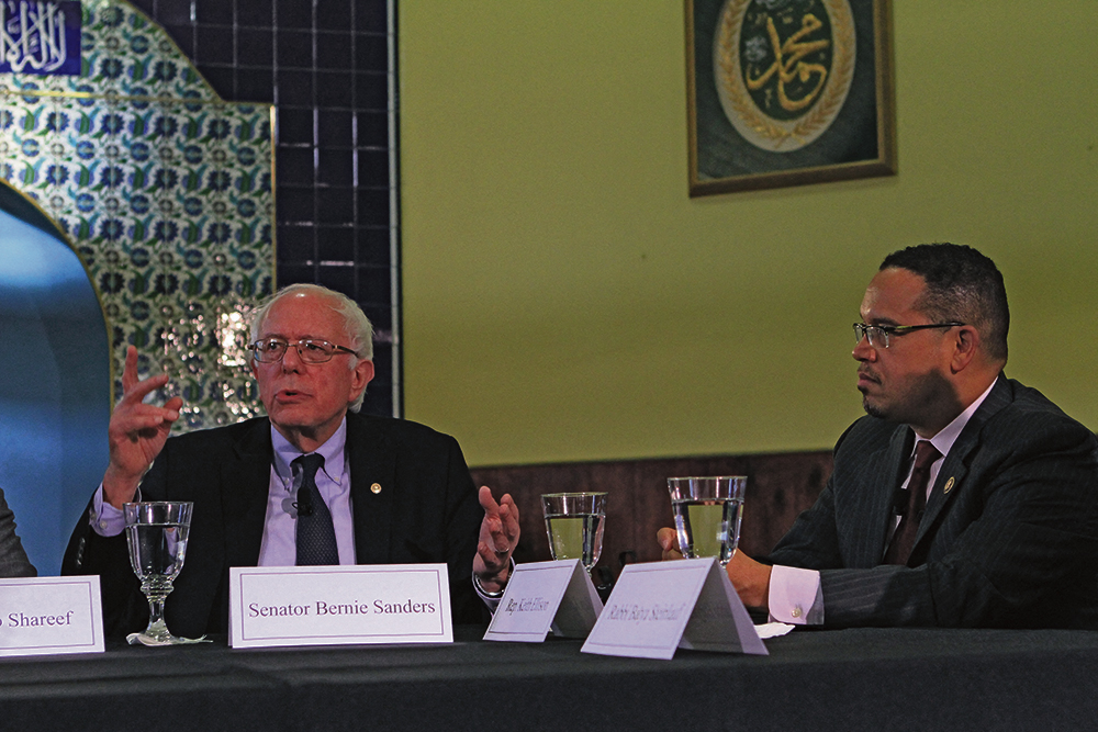 Конгрессмен Кит Эллисон (справа) и его покровитель, крайне левый социалист и антисемит, сенатор Берни Сандерс на собрании в мечети «Масджид Мухаммад» в Вашингтоне© MICHAEL HERNANDEZ ANADOLU AGENCY Anadolu via AFP