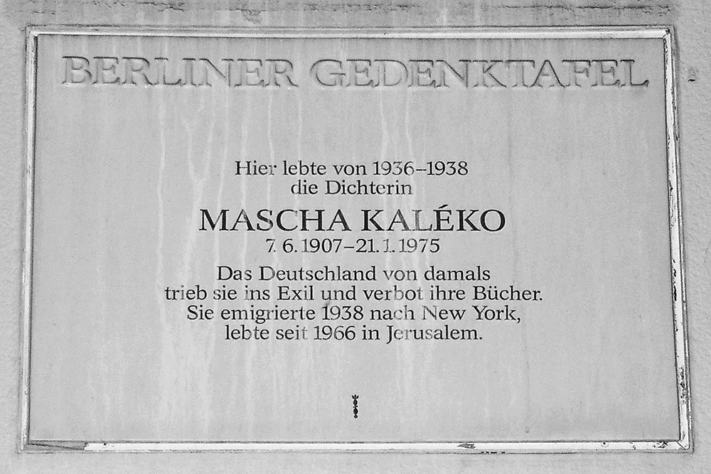 Мемориальная доска в Берлине на доме по адресу Bleibtreustr. 10/11, где Маша Калеко жила в 1936–1938 гг. © Wikipedia/Дорис Антони
