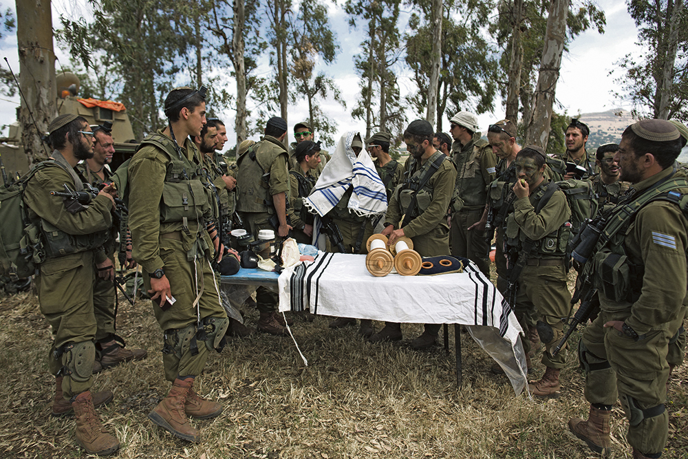Израильские солдаты из еврейского ультраортодоксального батальона «Нецах Йехуда» проводят утреннюю молитву. Батальон входит в состав бригады «Кфир», созданной для того, чтобы религиозные израильтяне могли служить в армии в атмосфере уважения к их религиозным убеждениям© MENAHEM KAHANA / AFP