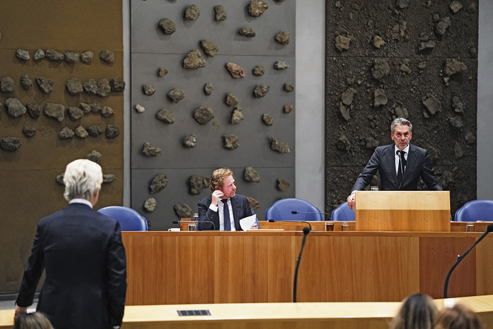 Своеобразный способ преодоления экзистенциальных страхов: в ходе дебатов в нижней палате парламента Бельгии по поводу насилия в отношении болельщиков «Маккаби» (Тель-Авив) в Амстердаме премьер-министр Дик Шуф демонстрирует пошедшие в ход камни, которые бросали «испуганные» антисемиты© JEROEN JUMELET / ANP MAG / ANP VIA AFP