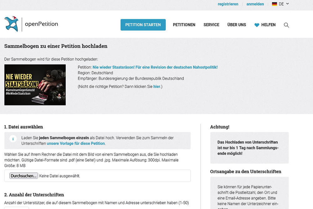 Скриншот страницы петиции на сайте openPetition