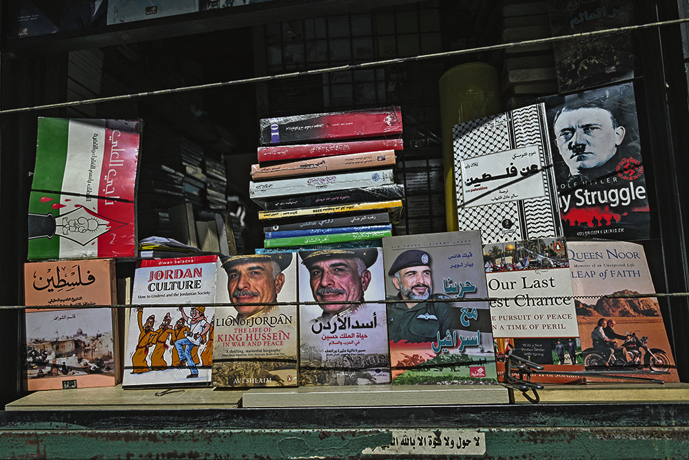 Уличный киоск в столице Иордании, где наряду с другой политической литературой продается палестинская версия книги Гитлера «Моя борьба»© STR / NURPHOTO / NURPHOTO VIA AFP