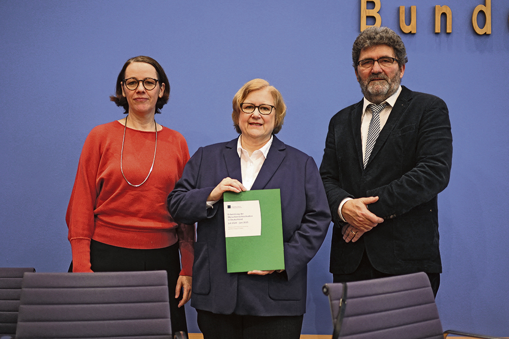 Директор DIMR Беате Рудольф (в центре) и ее коллеги представляют результаты своей деятельности© CHRISTIAN MARQUARDT_NURPHOTO _NURPHOTO VIA AFP