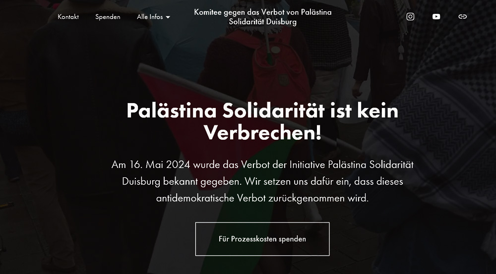 Скриншот сайта «Комитета против запрета „Палестинской солидарности Дуйсбурга“»
